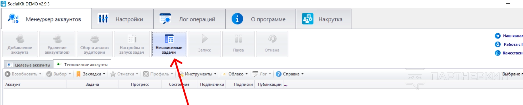Независимые задачи — это функция позволяет создавать задачи, которые не будут привязаны к конкретному аккаунту в программе. То есть пользователь создает массовые задачи, которые будут распределятся по типам, а не по принадлежности к конкретному аккаунту.