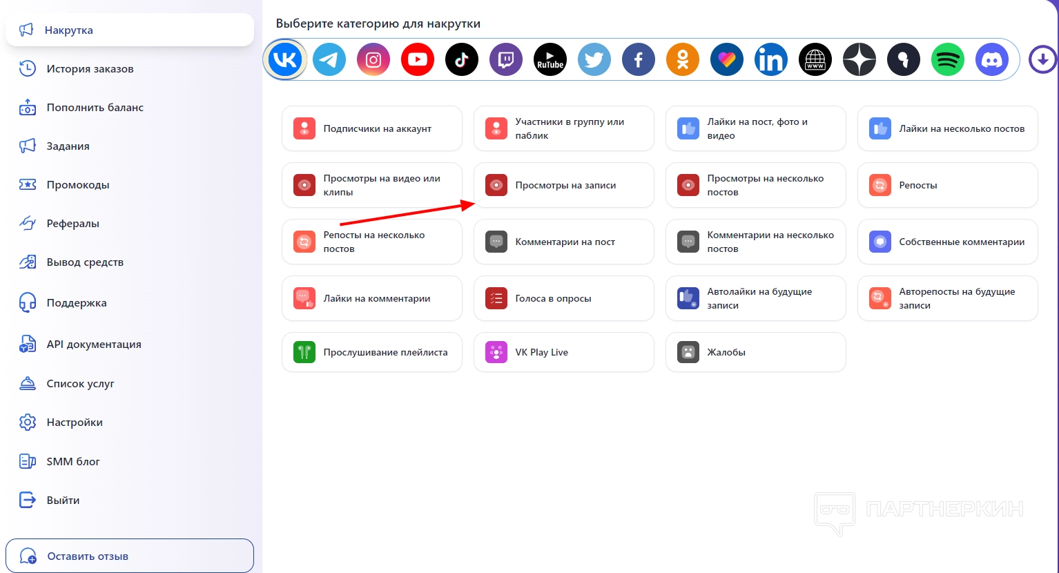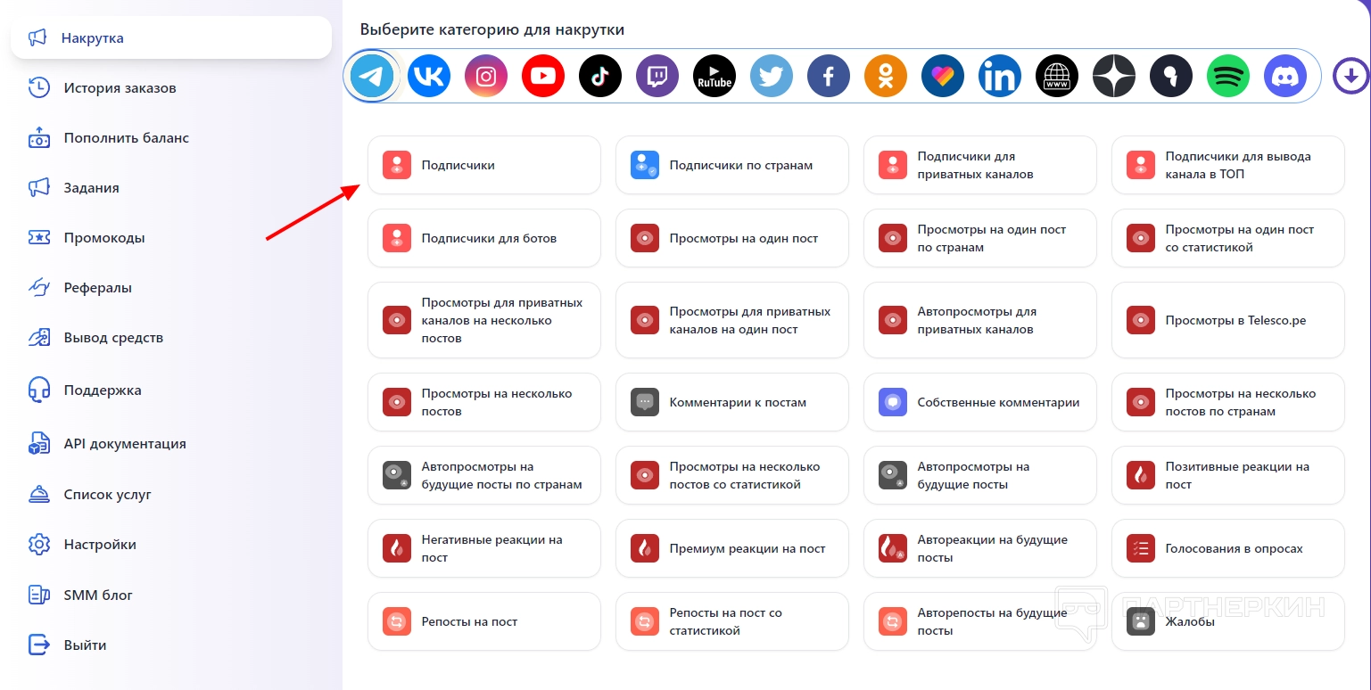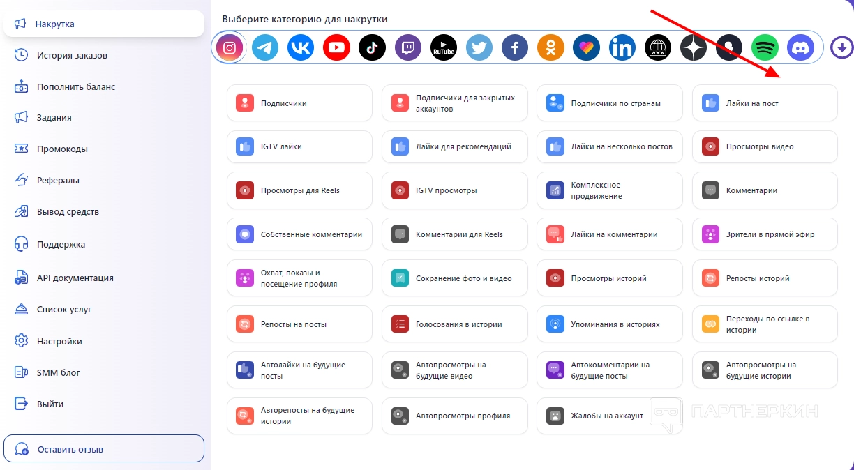 Категории для накрутки