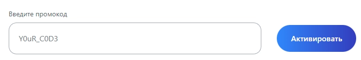 Далее — ввести промокод в поле и нажать кнопку «Активировать».