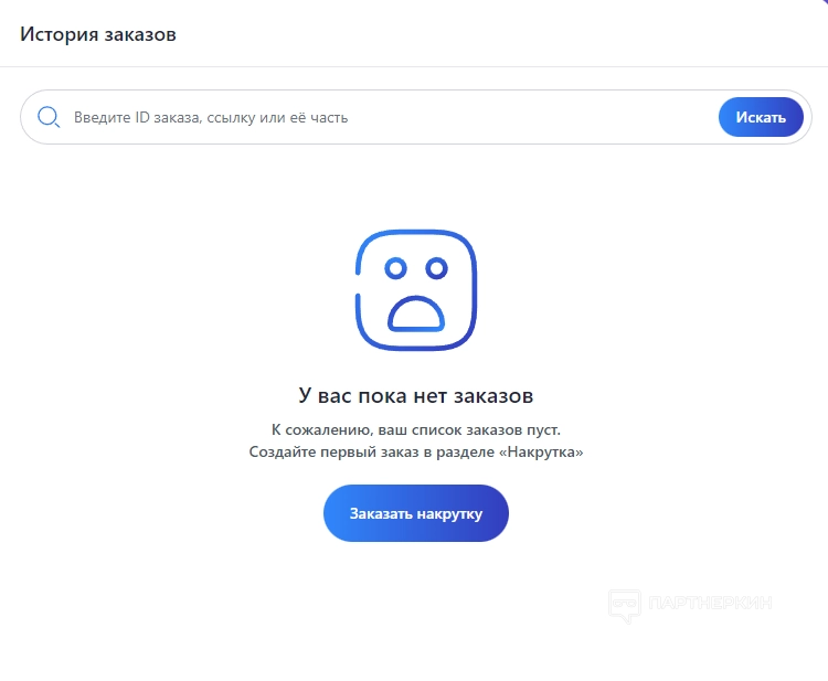 На этой странице отображается список заказов. В нашем примере он пустой.