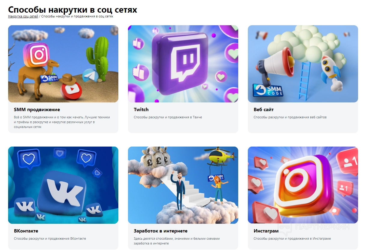 Здесь рассказывается о способах накрутки и продвижения в социальных сетях. Статьи разделены на несколько категорий: