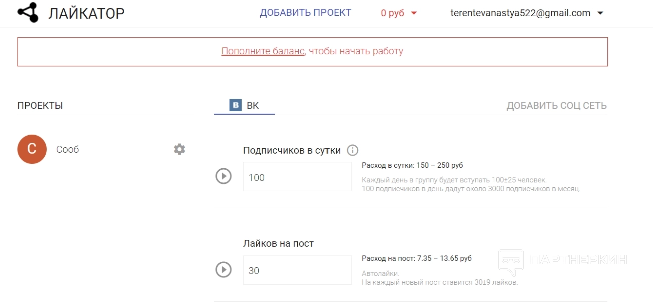 Далее нужно указать необходимое количество активностей в сообществе в день, и система начнет их накручивать регулярно после оплаты услуги.