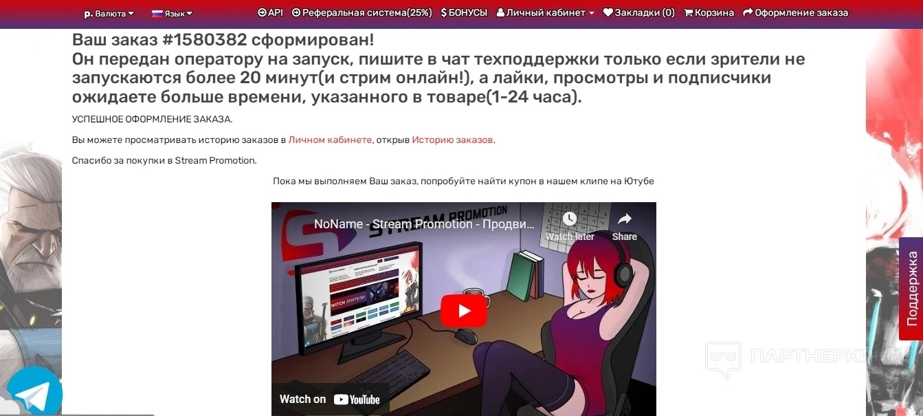 Stream Promotionесть несколько вариантов обращения к специалистам: чат в WhatsApp, Telegram, виджет на сайте и другие. Такая вариативность позволяет использовать наиболее удобный канал для решения вопросов;