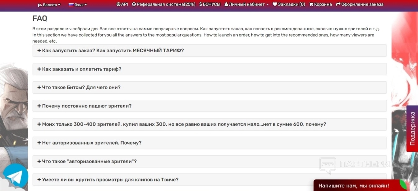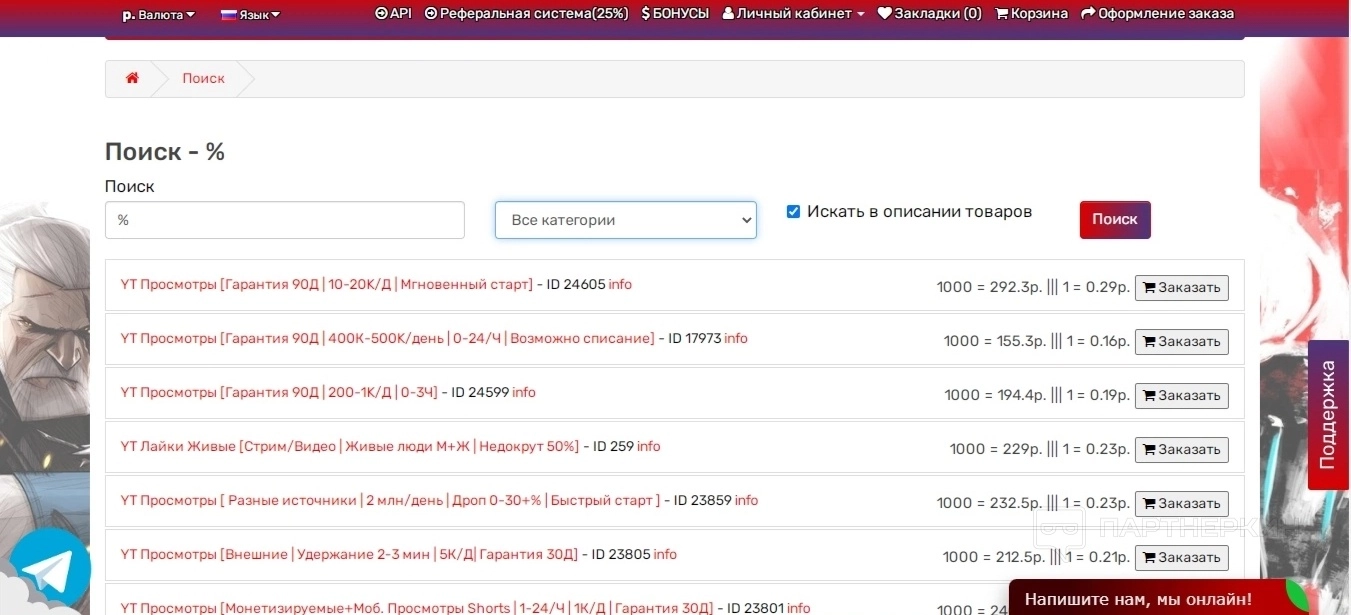 - Партнерская программа . Для желающих заработать дополнительные бонусы или денежные средства команда сервиса подготовила реферальную программу, которая позволяет получать до 25% от покупок приведенных рефералов. Для участия в ней необходима отдельная регистрация в качестве партнера, после чего станет доступна специальная реферальная ссылка для размещения на своих ресурсах.