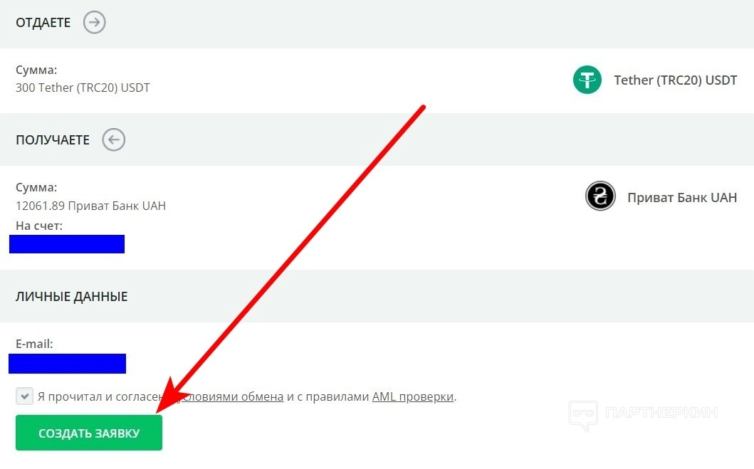 - Проверьте введенные вами данные. Создайте заявку на обмен.