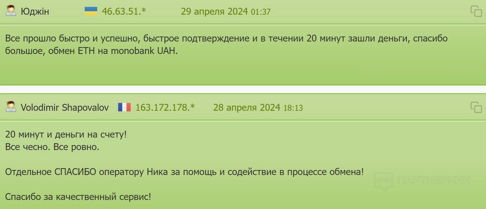 Пользователи в своих комментариях свидетельствуют о том, что время транзакции в среднем составляет около 20 минут, что весьма впечатляюще для обменного сервиса.