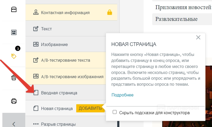 Заголовки страниц — при активации данной функции можно добавить для каждой страницы свой заголовок. Это может быть полезно, чтобы отладить в глазах респондентов вопросы по тематике или сложности.