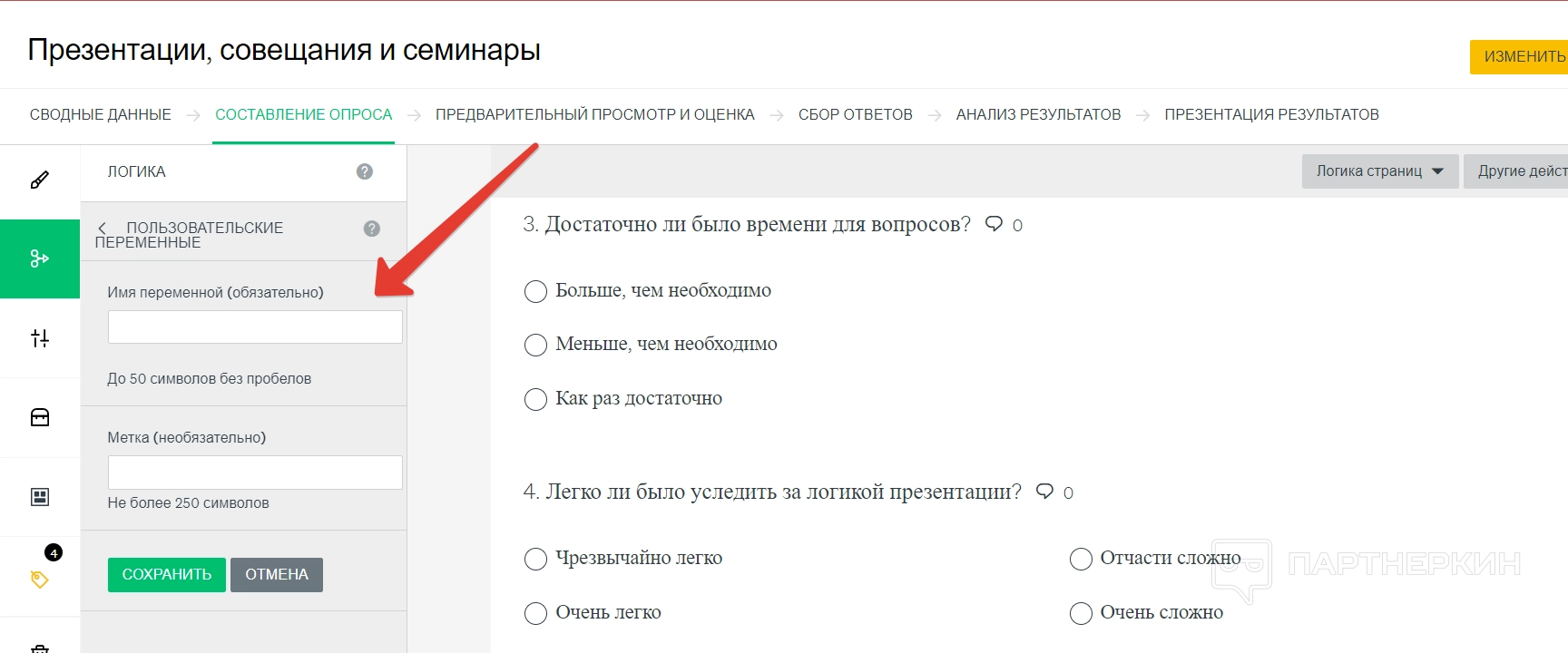 Пользовательские переменные — это последняя функция из раздела, которая позволяет отслеживать сведения о респондентах по данным из их урла. Принцип работы с ней в том, что для каждого участника опроса выдается отдельная ссылка на него. При заполнении некоторых данных респондентами они будут автоматически поступать в отчет опросов. Например, владельцу компании нужно узнать о результатах внедрения новой программы, а также понимать, что именно за сотрудник дал ответ. Вместо того, чтобы все имена и должности собирать вручную, можно настроить пользовательские переменные и получить их автоматически в формате таблицы.