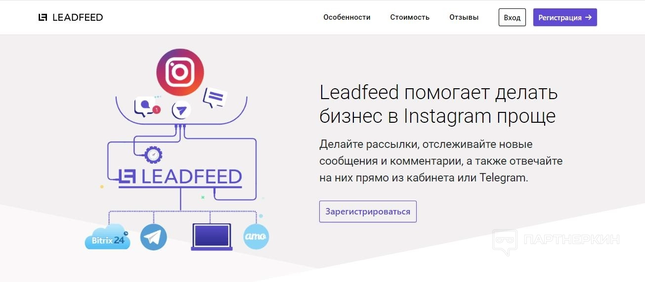 - Интеграции . Разрешается настраивать общение через любой удобный канал связи. Пользователь может подключить telegram-бота, вести переговоры через личный кабинет в amCRM или Битрикс24.