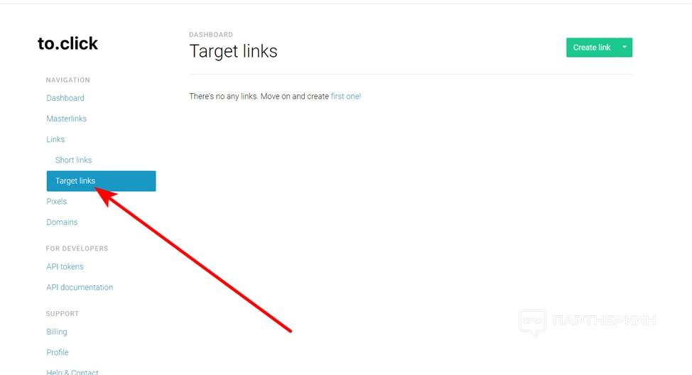 - Навигация. Раздел, где собраны инструменты для создания и управления ссылками. Состоит из следующих вкладок: информационная панель, основные ссылки, ссылки, пиксели, домены.