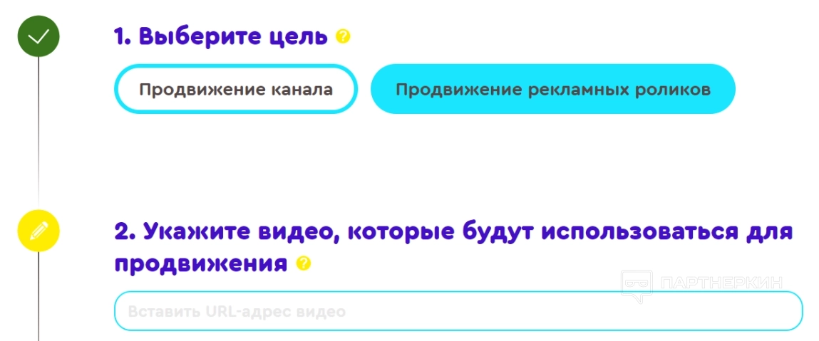 Чтобы начать работу с сервисом, нужно сначала пройти регистрацию. В процессе пользователю необходимо указать, что ему нужно продвигать — канал в целом или только рекламные ролики.