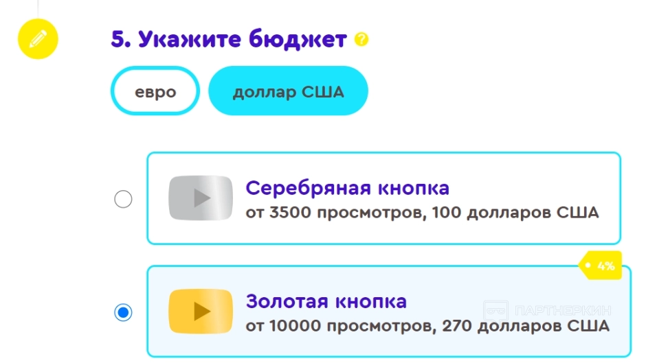 Последний шаг — это расчет бюджета. Здесь необходимо выбрать, в какой валюте он будет происходить — в евро или в долларах.