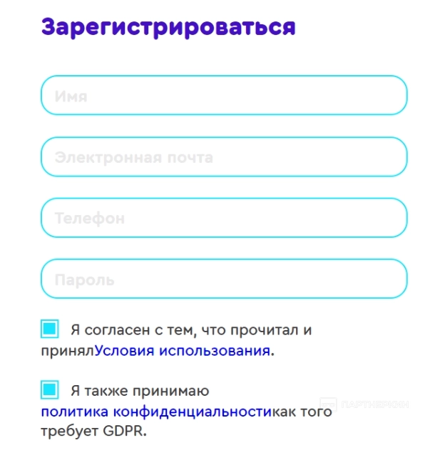 После прохождения всех этапов пользователь попадает в меню самой регистрации — там нужно указать имя, электронную почту, номер телефона и пароль.