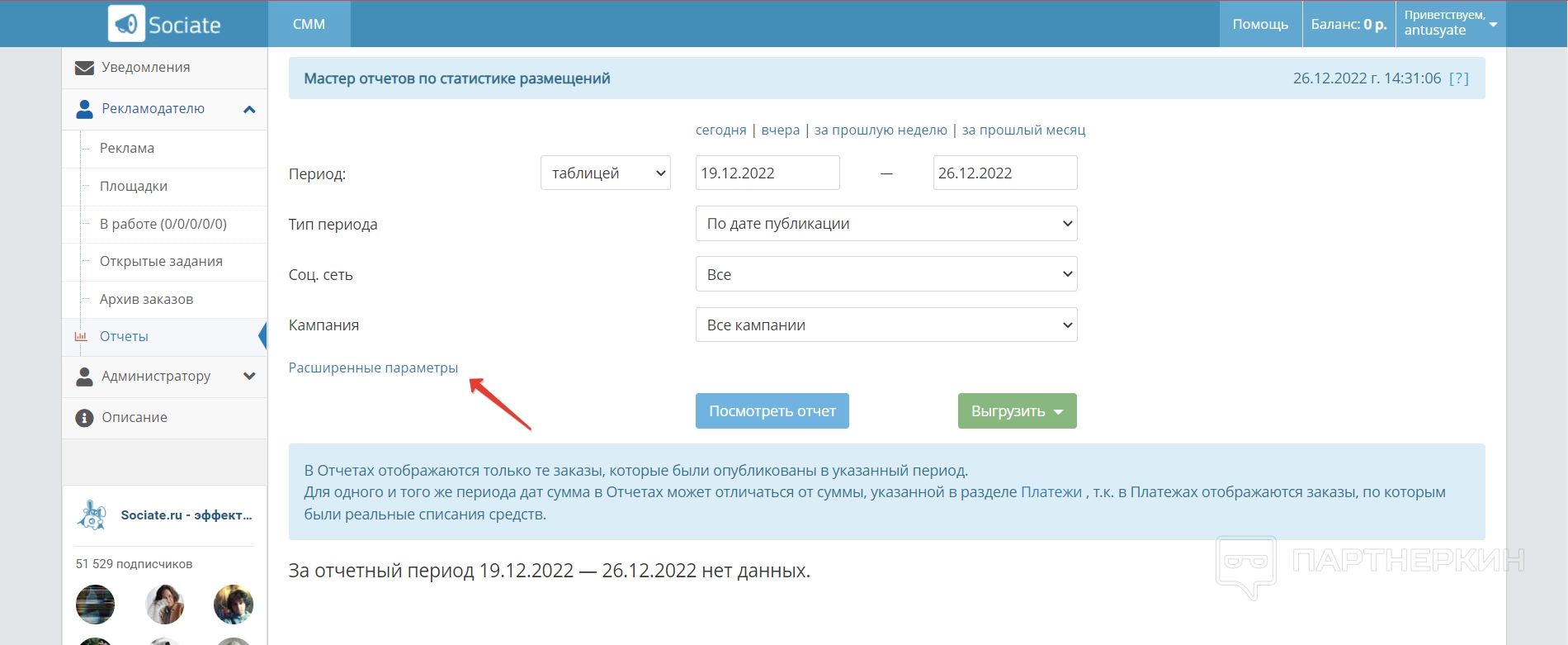 Отчеты — в этом разделе собираются все задания, которые уже исполнили, а также результаты по ним. Поэтому и искать их можно по результатам. Например, по сумме, которую потратили на задание, показателям по лайкам, комментариям, репостам, скриншотам и так далее. Чтобы увидеть все эти дополнительные фильтры, нужно расширить список.