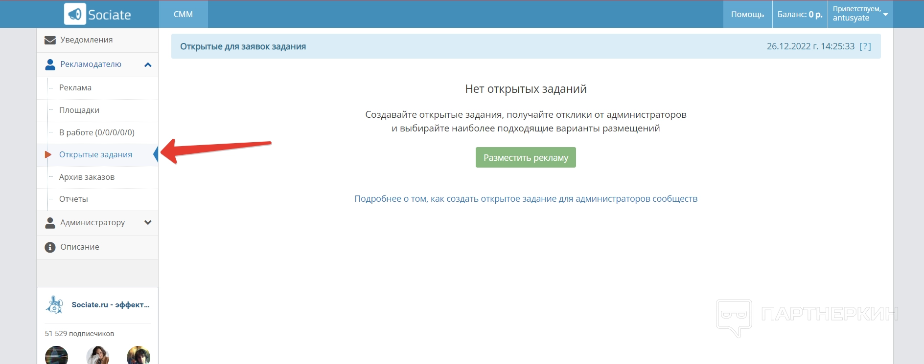 Открытие задания — это возможность создавать открытые задания, которые будут доступны всем администраторам. Это значит, что если администратору понравится объявление, он может откликнуться на задание и разместить объявление в своем сообществе.