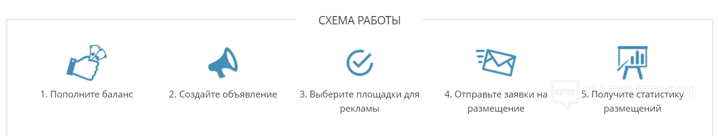 Если рекламодатель, то стоит сначала посмотреть расценки на размещение, а затем пополнить счет на примерную сумму. После этого он может создать объявление и ждать окончания проверки. Когда проверка закончится, администраторы увидят объявление и смогут предложить свои услуги. По итогу рекламодатель оплачивает размещение и ждет результат кампании.