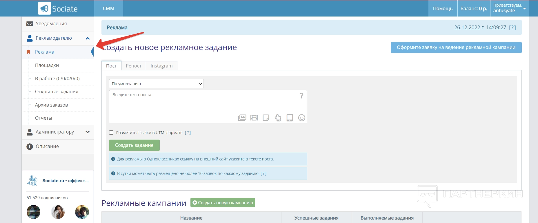 Sociate — это сервис, который помогает делать органическую рекламу в сообществах Вконтакте и Одноклассниках, а также в ленте Инстаграм*. Но здесь могут регистрироваться и администраторы сообществ или владельцы аккаунтов в Инстаграме*, чтобы предлагать свои площадки рекламодателям за определенную цену.