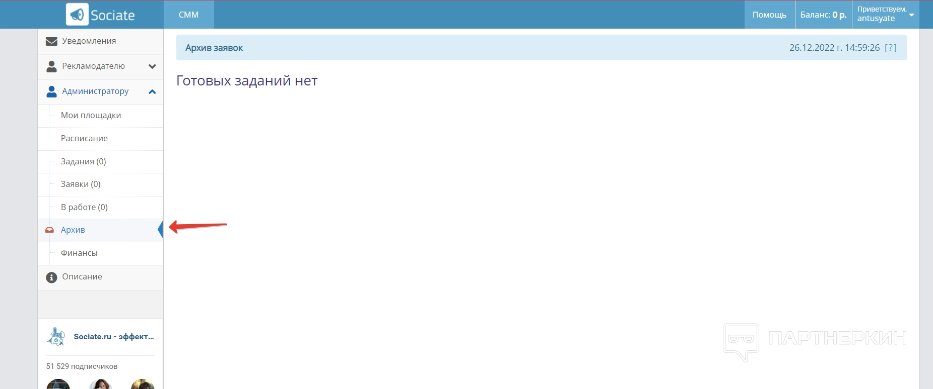 Архив — в разделе можно найти задания, которые администратор уже выполнил.