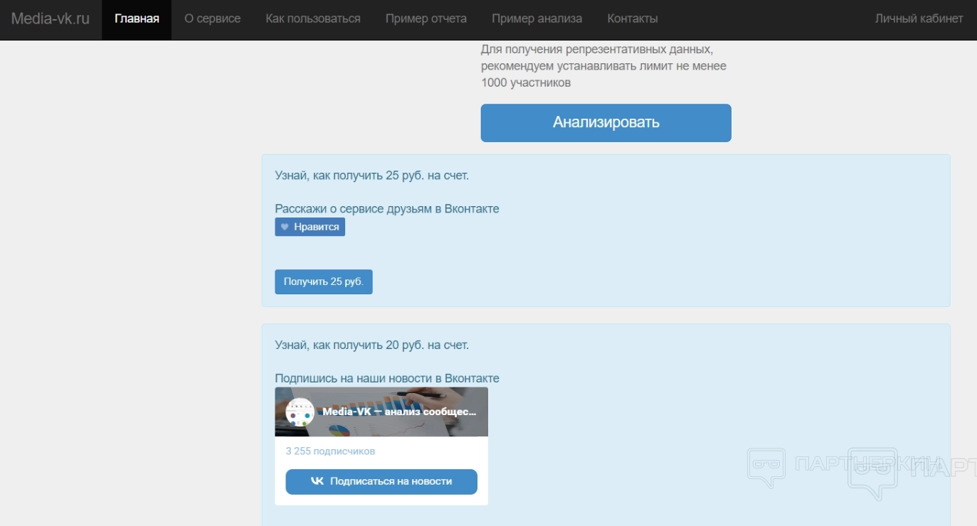 Если не хочется сходу тратить средства на проверку функционала сервиса, можно использовать тестовые 45 рублей. Они предоставляются сразу после того, как пользователь поделится сервисом со своими друзьями ВКонтакте через репост записи на стену и подпишется на паблик платформы.
