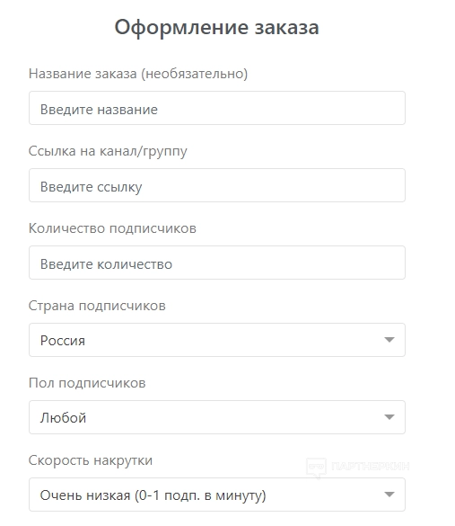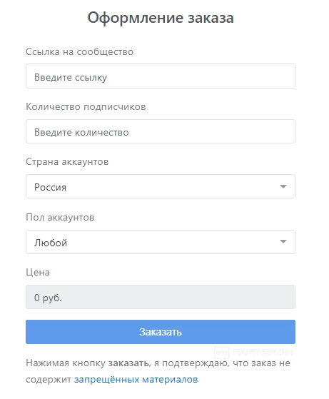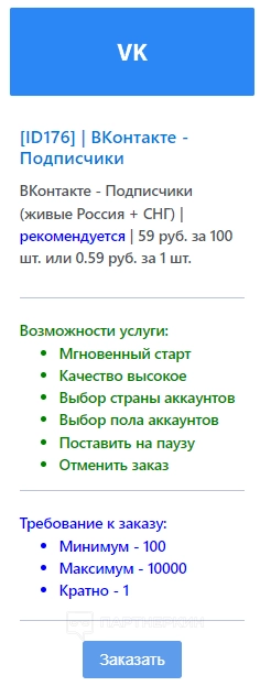 - требования к заказу (минимальное и максимальное количество подписчиков).