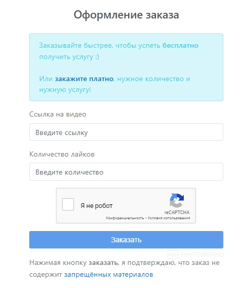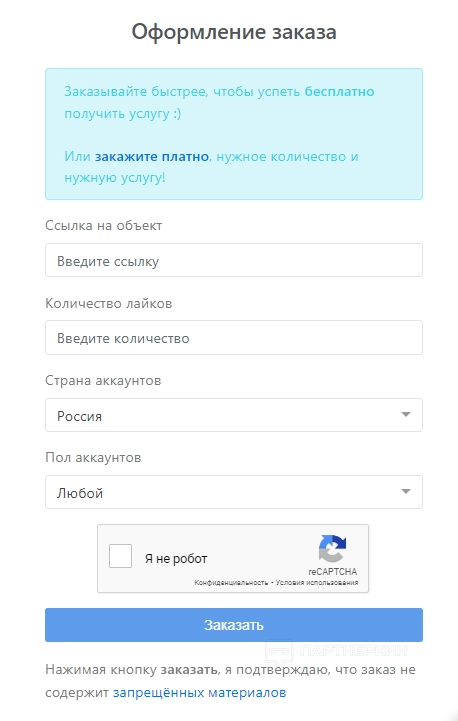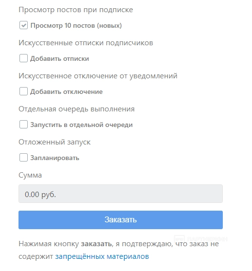 После заполнения полей и применения настроек необходимо нажать «Заказать». Услуга автоматическая. Выполнение начинается моментально после заказа (не более 5 минут).
