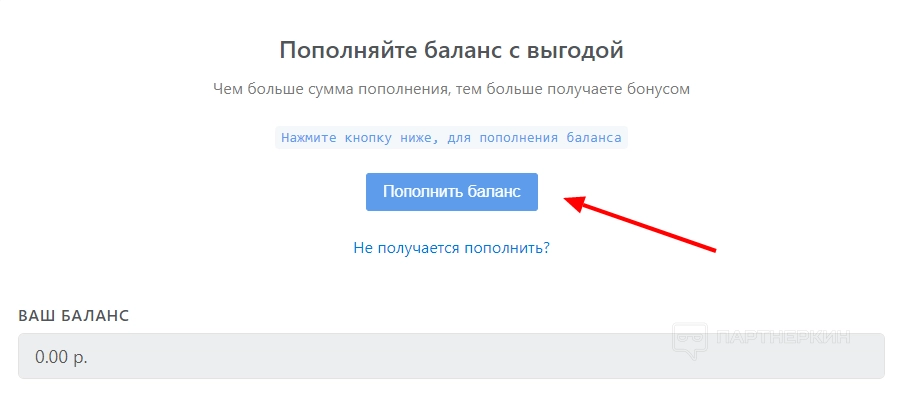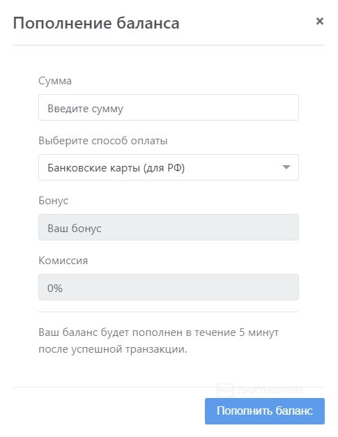 Здесь пользователь сервиса может совершить депозит. Для этого необходимо нажать кнопку «Пополнить баланс».