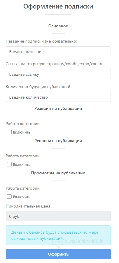- Подписка на услуги . Разовое оформление заказа подписки гарантирует постоянное продвижение профиля.