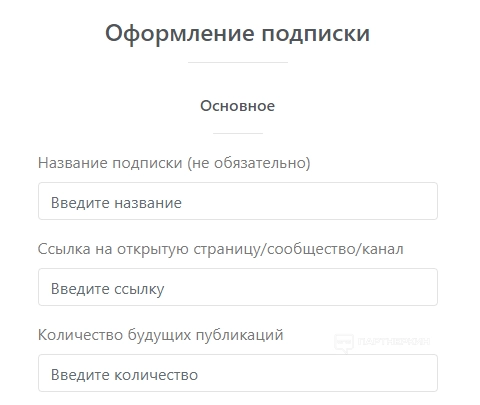 Для оформления подписки необходимо заполнить такие же поля, как и для ВКонтакте.