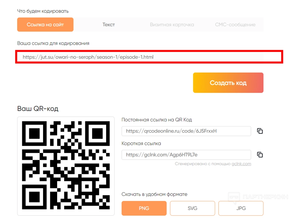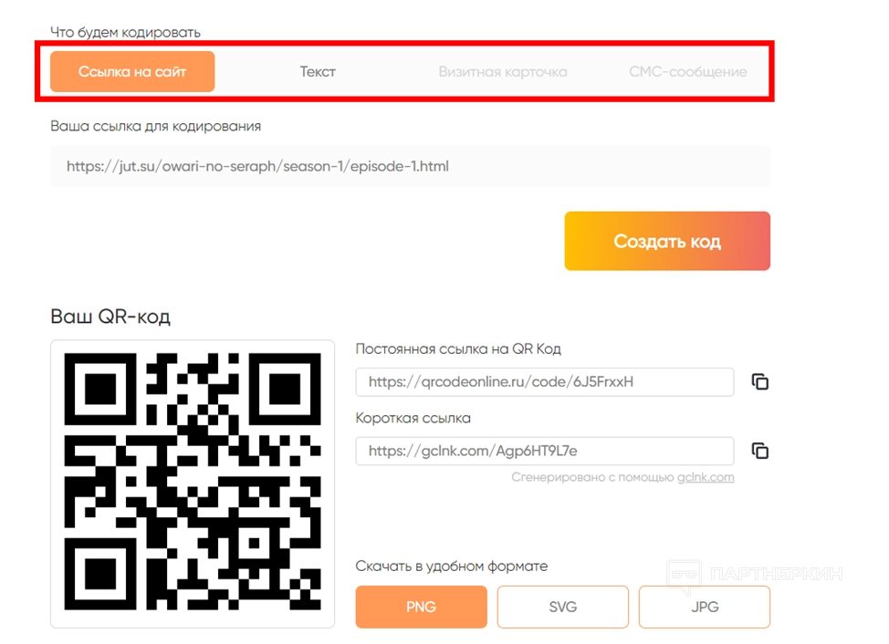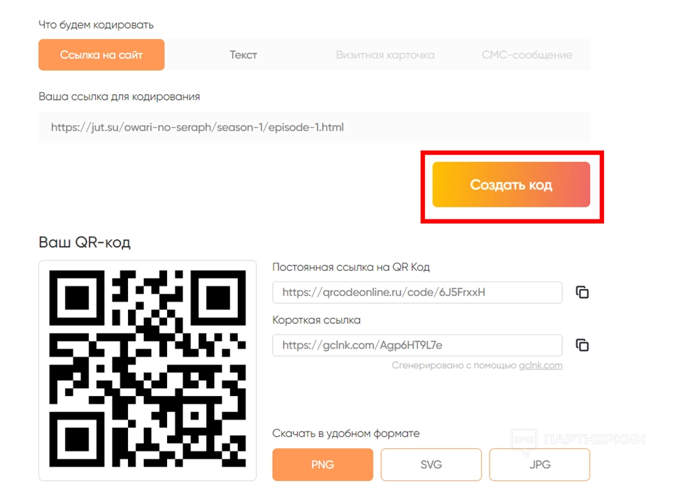 Чтобы сгенерировать QR-код выполните следующие действия: