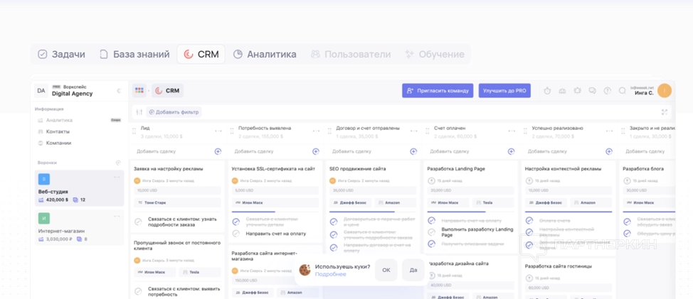Сервис представляет собой онлайн-инструмент, который разработан для управления проектами и задачами. Состоит из нескольких элементов. Проект обеспечивает возможность создания установки сроков. Также он контролирует их выполнение. Такой подход делает процесс командной работы более удобным и повышает эффективность рабочих процессов.