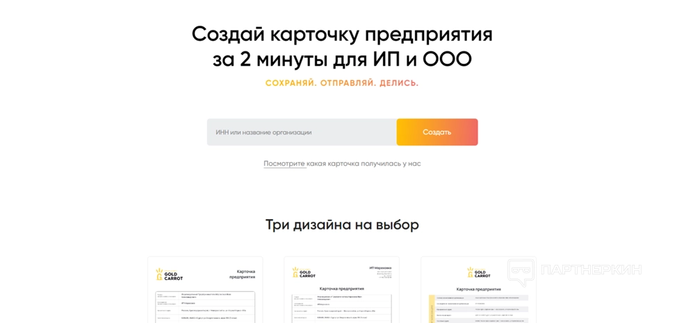 Это визитка компании. Можно добавить свои данные и сервис красиво их оформить. Достаточно ввести ИНН в соответствующее поле. В течение 5-10 секунд проект будет готов. Нужно только выбрать тип дизайна. Остальное сделает система.