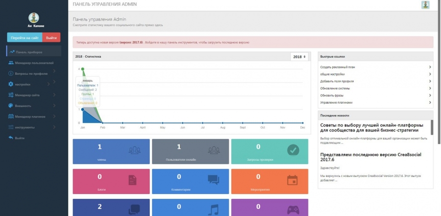 Можно загружать видео, фотографии и прочее. Публиковать свои блоги, добавлять в друзья ..