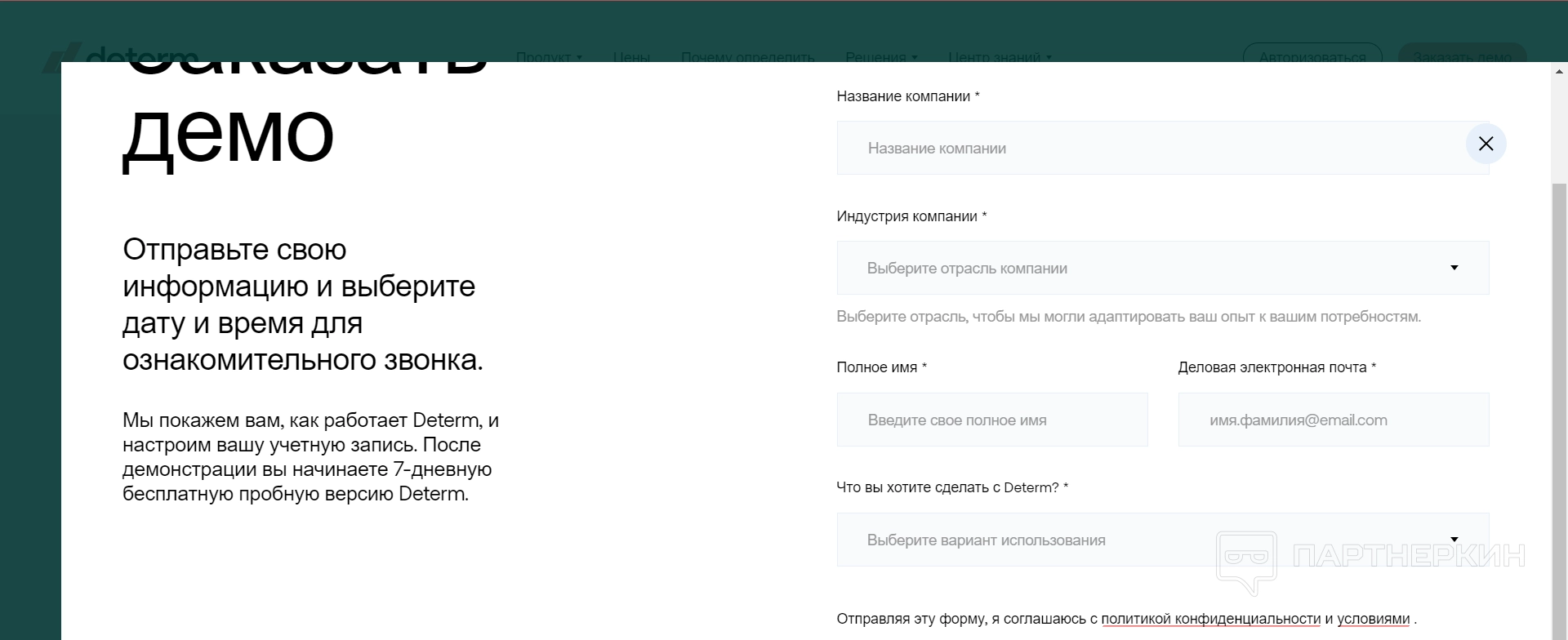 При оформлении заявки пользователю необходимо указать такие данные, как название своей компании, отрасль бренда, полное имя пользователя, коммерческая электронная почта, а также цели использования сервиса.