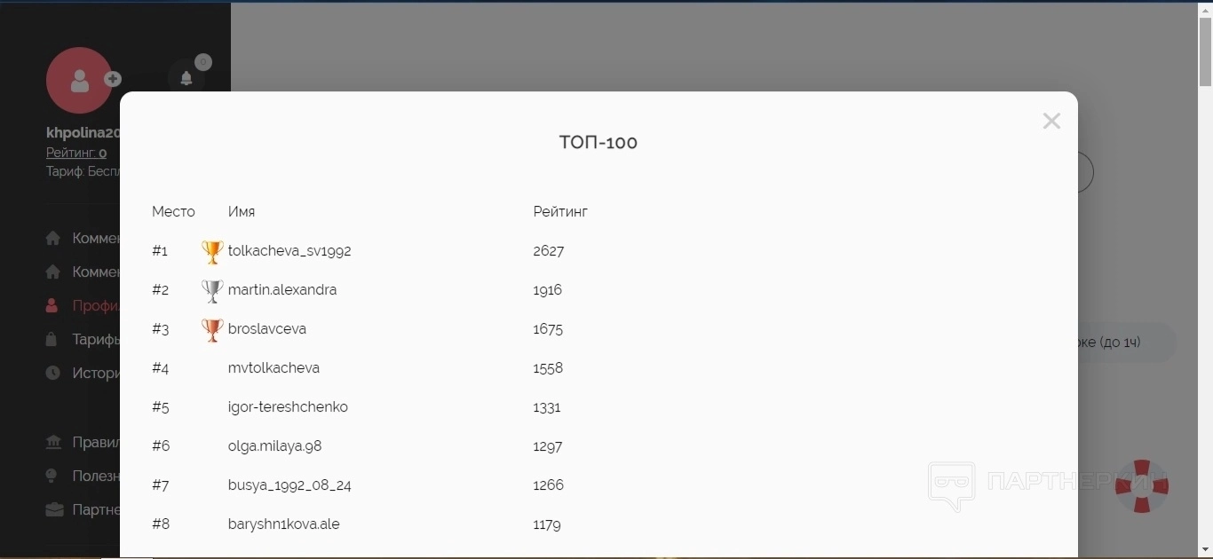Кнопка Рейтинг позволяет просмотреть самых топовых комментаторов, среди которых в будущем можно оказаться самому.