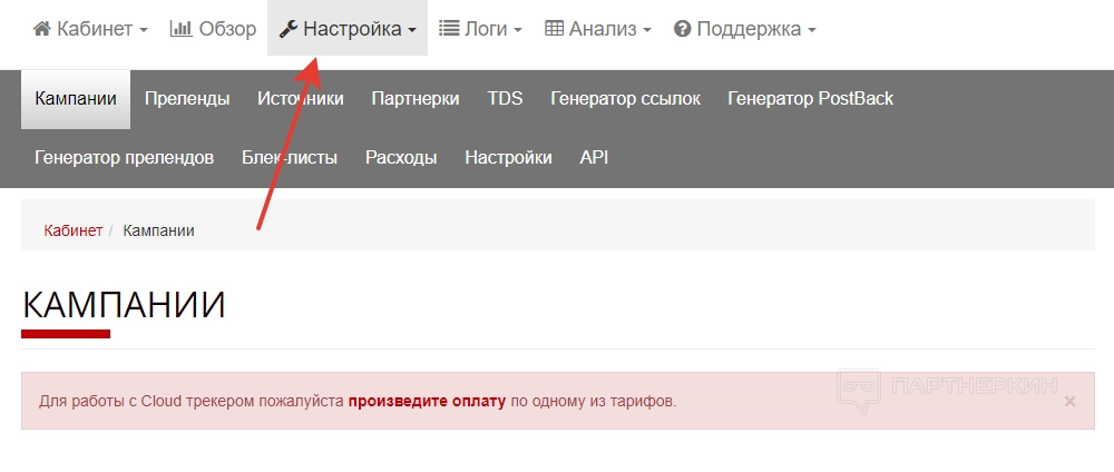 Правее от « Личного кабинета » можно найти несколько страниц, каждая из которых предоставит инструменты для выполнения определенных действий. Например, на странице «Обзор» будут отображаться сведения от подключенных кампаний, прелендов, источников, партнерок и прочих элементов.