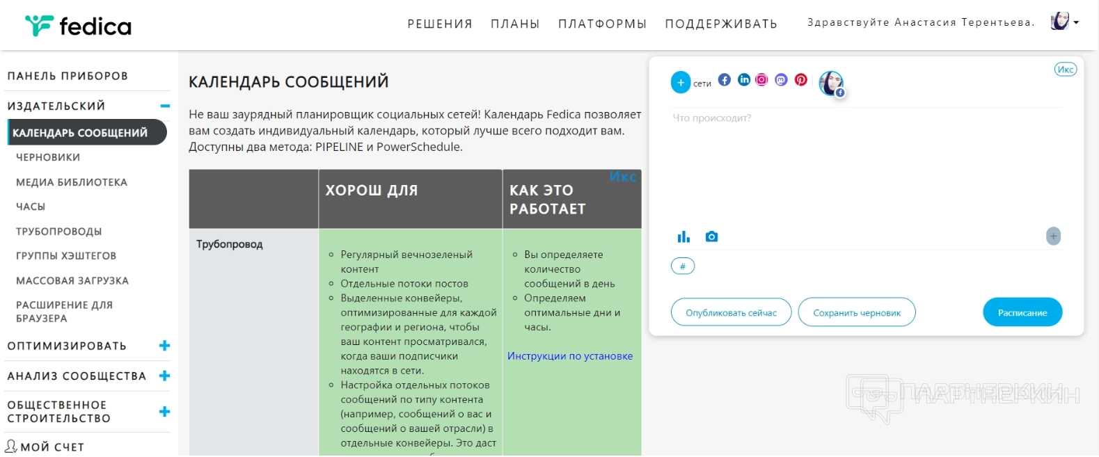 Авторизация и дальнейшая работа происходит на Fedica — это, собственно, и есть сам сайт, на котором можно использовать услуги