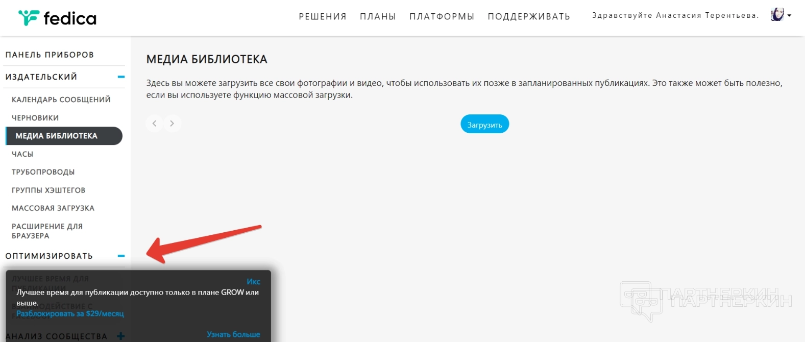 Оптимизация — этот раздел доступен только тем пользователям, которые оплатили подписку на сервис. С его помощью можно быстро узнать лучшее время для публикации контента, а также получить улучшенную аналитику взаимодействий со странице пользователя в Фейсбук*.