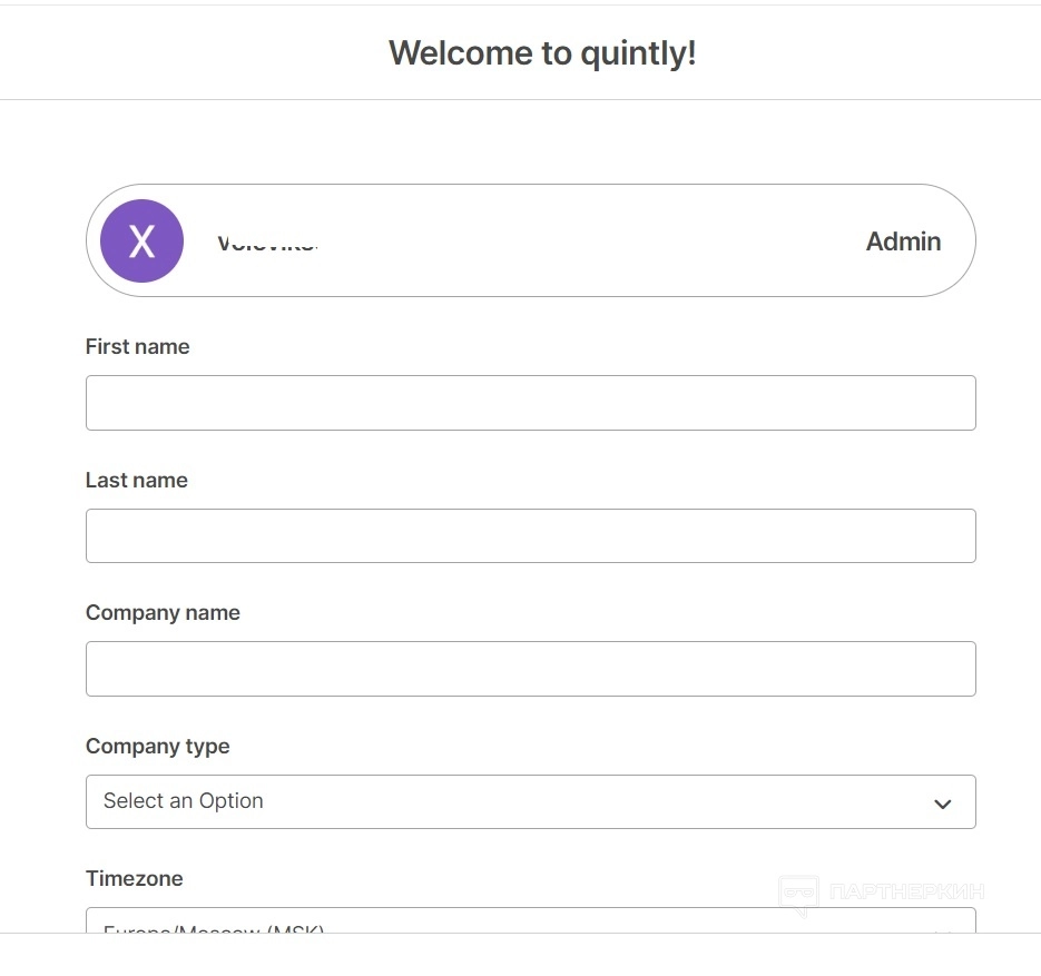 Quintlyи зарегистрироваться для создания учетной записи. Потребуется указать свои данные, включая имя, адрес электронной почты и пароль.