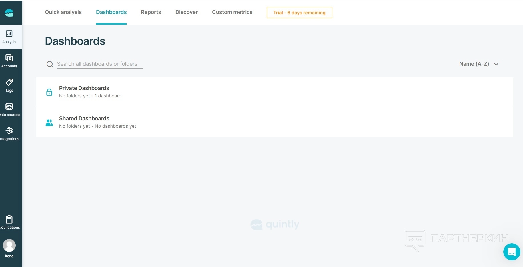 Quintlyпредоставляет дашборд, где можно просматривать и анализировать данные об аккаунтах. Можно изучать метрики, проводить сравнения с конкурентами, создавать отчеты, чтобы представить результаты коллегам или клиентам.