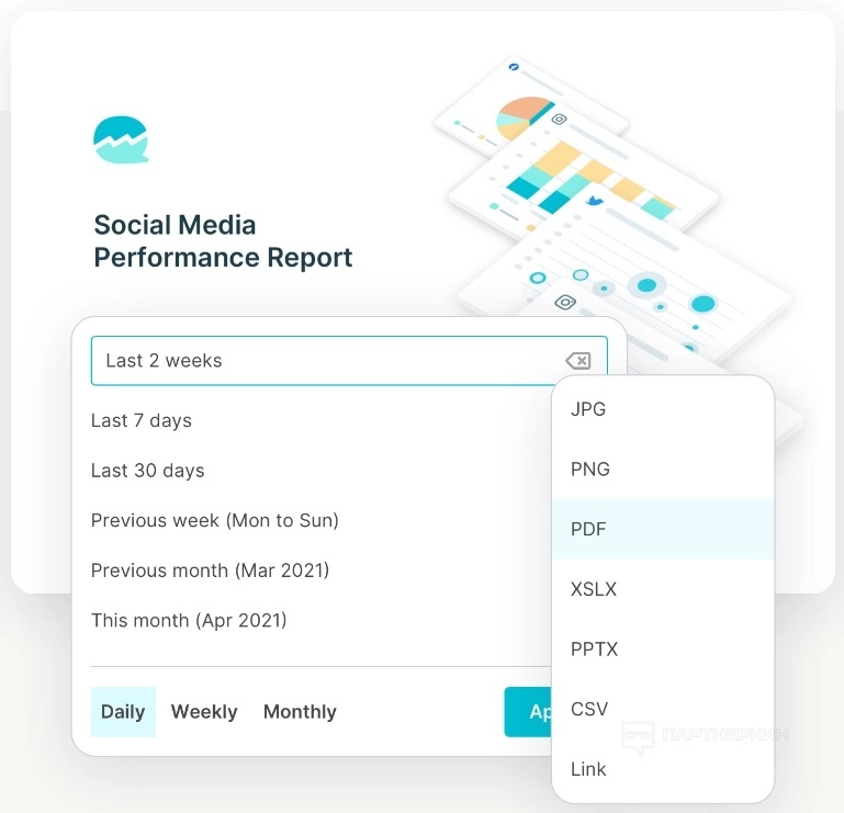 - Создание отчетов . Сервис позволяет создавать подробные отчеты об активности в соцсетях. Можно выбирать нужные метрики, настраивать отображение данных и экспортировать отчеты в различных форматах — PDF, Excel. Это полезно для внутренней отчетности и обмена информацией с коллегами или клиентами.