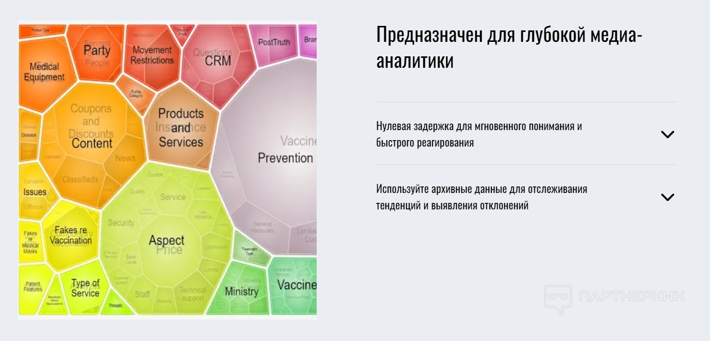 - анализировать медиа-пространство на уровне отрасли, бренда или продукта;