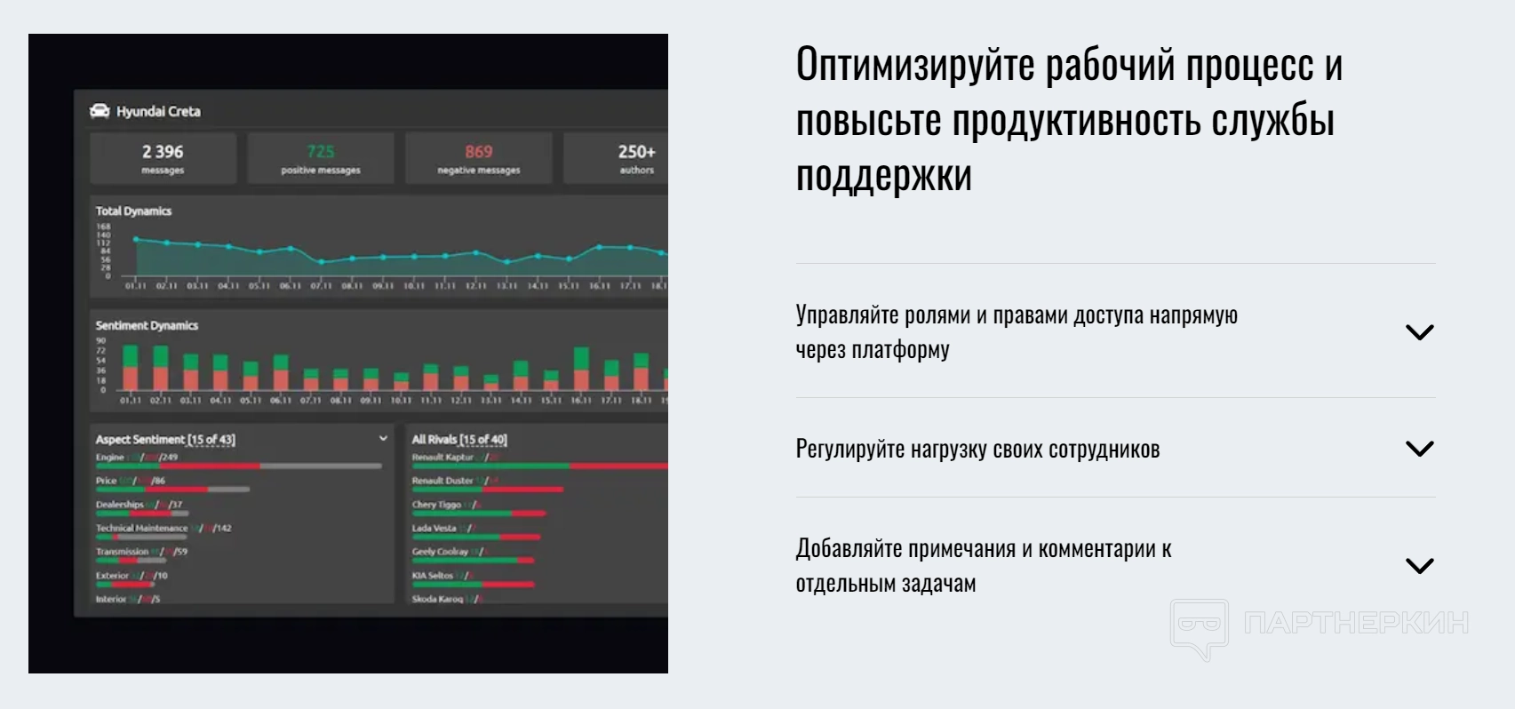 Инструмент дает возможность отслеживать общение ваших менеджеров с клиентами через мессенджеры (для более детального анализа восприятия и обсуждения продуктов и бренда).