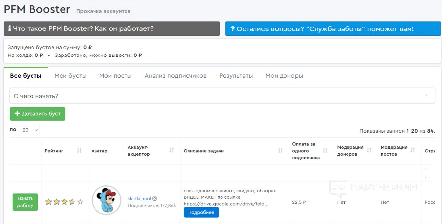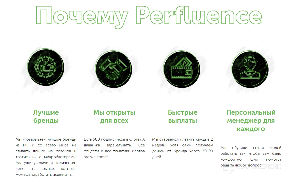 Мы рассмотрели основные способы заработка средств на Perfluence. Еще у площадки есть альтернативный вариант заработать деньги — продвигать других блогеров в разделе «Бустер».