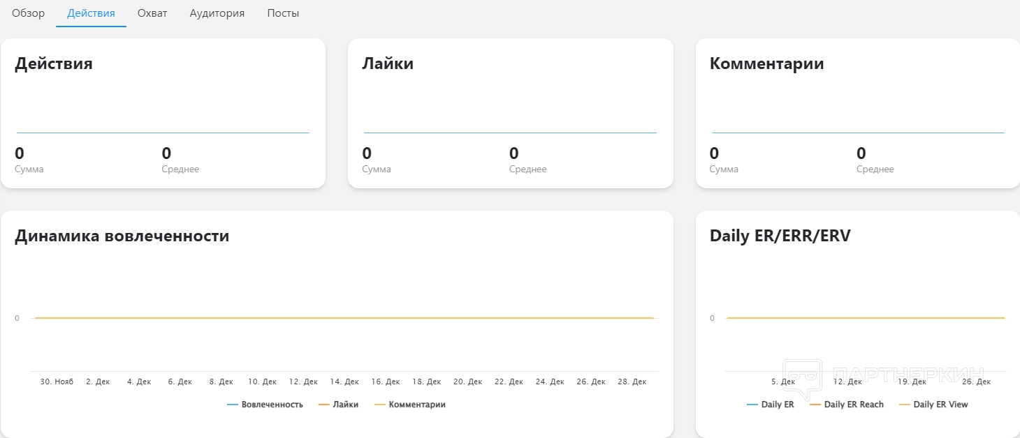 - Действия. Лайки, комментарии и репосты — пользователи совершают целевые действия с постами, которые публикует специалист. На основе этой информации можно рассчитать вовлеченность и узнать, какие материалы набирают больше всего реакций.