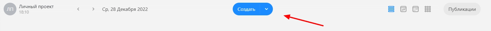 Чтобы опубликовать пост в социальной сети, необходимо в личном проекте выбрать пункт «Создать».
