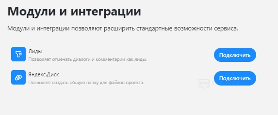 Чтобы включить модули и интеграции, нужно нажать кнопку «Подключить».