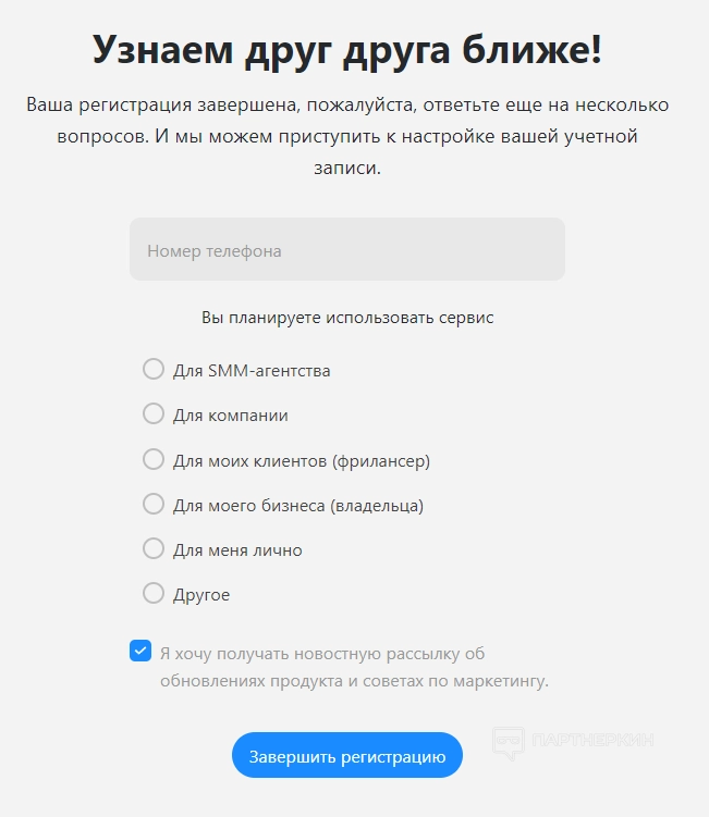 После регистрации клиенту предложат ответить на несколько вопросов. Потом можно приступить к настройке учетной записи.