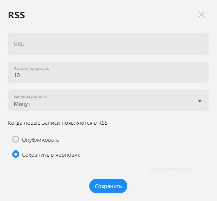 RSS — это информационная лента в формате XL, предназначенная для выгрузки данных с какого-либо ресурса в ленту. Если на сайте пользователя работает RSS, он может настроить в сервисе