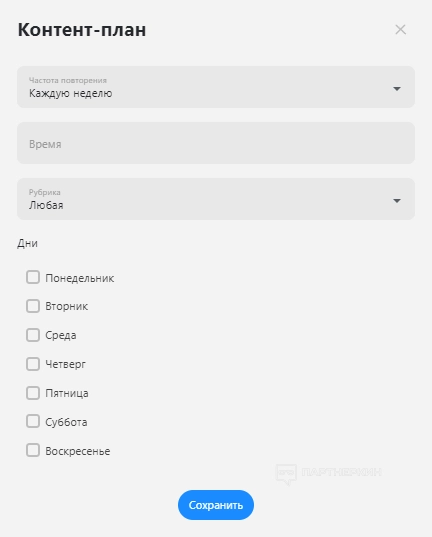 В контент-плане можно настроить удобное время и рубрику для публикаций, которые будут автоматически подставляться при создании постов.