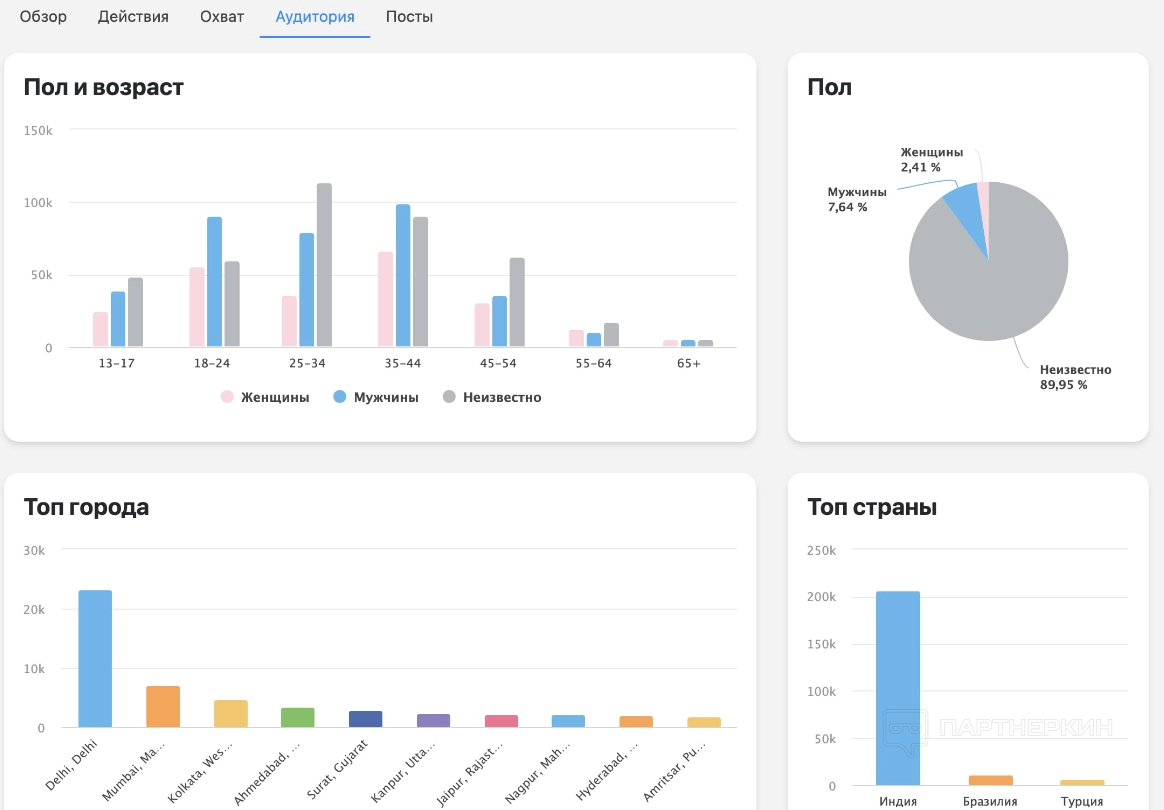 - Аудитория. Пол, возраст и география подписчиков помогут придумать и сформировать лучшую стратегию для контента.